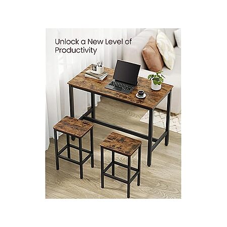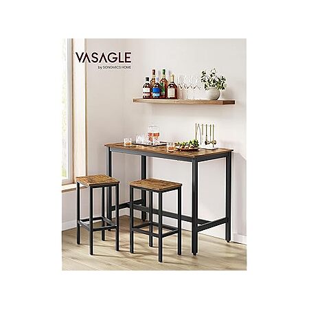 3-Piece Vasagle Bar Table Set w/ Bar Stools (Rustic Brown/Black) $40 + Free Shipping w/ Prime