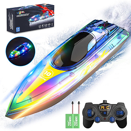 Wisairt 15Km/h Remote Control Boat with LED Lights for Pools/Lakes, 2.4GHz High Speed RC Boat with 2 Rechargeable Batteries, Perfect Summer Water Toys for Ages 10+ (Blue) $11.99