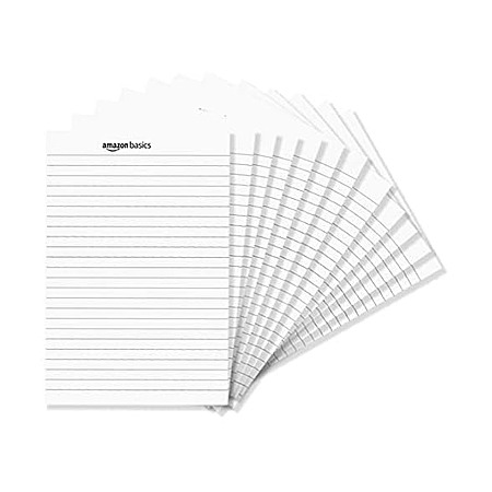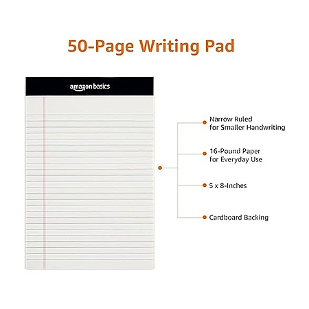 An Amazon Brand Narrow Ruled 5 x 8-Inch Writing Pad - White(50 sheets per pad, 12 pads per pack,6 packs per carton)