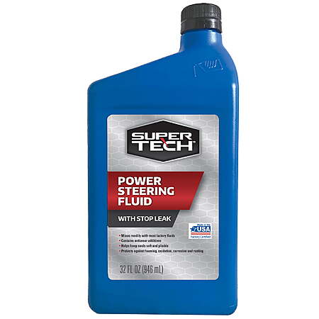 Keep your internal components protected and restore your vehicle to its original state of easy turning and responsive handling with this Super Tech Power Steering Fluid. The high-quality formula is enriched with a conditioner and leak-stop, and helps eliminate pump squealing, protects seals and prevents unusual wear. This auto fluid keeps your steering system free of sludge, tiny metal particles and other potentially damaging deposits and ensures a smooth and a quiet operation. It mixes easily with most factory power steering fluids. This Super Tech Power Steering Fluid is available in a convenient 32 fl oz container. (Car|Crossover & Minivan|Sport Utility Vehicle. 2 lbs. 9" x 4") Super Tech Power Steering Fluid, 32 oz Helps stop pump squealing, protects seals and helps prevent unusual wear Mixes with most factory power steering fluids Model# 69429 With leak stop Keeps steering system clean For smooth, quiet operation Protects internal components Removes sludge, tiny metal particles and other deposits 32 fl oz auto power steering fluid Car|Crossover & Minivan|Sport Utility Vehicle 2 lbs