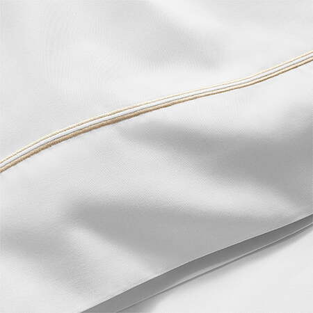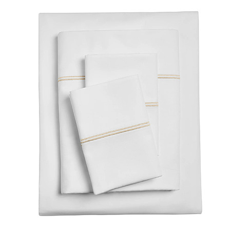 Hotel Style 4-Piece 300 Thread Count White Pima Cotton Bed Sheet Set with Tan Hem, Queen , Double marrow Hem