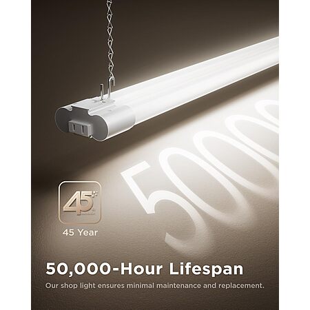 LINKABLE - Easily daisy chain the LED shop light to create an extendable design. Seamlessly connect up to 4 LED shop lights together with connectors for energy savings in your home, office, or workspace.