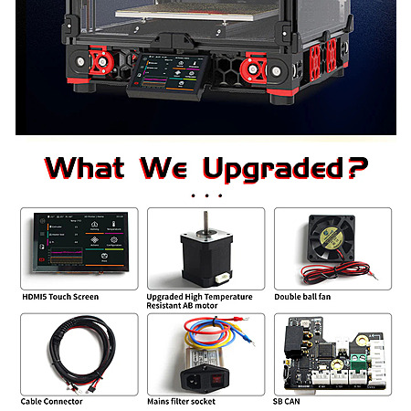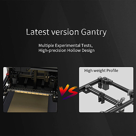 Fysetc's version includes several hardware upgrades over the standard Voron 2.4. The kit comes with a CNC-machined hollow gantry and 440C stainless steel hollow rails, reducing weight and improving rigidity for high-speed printing. It uses the Stealthburner extruder with an integrated CAN board and RGBW lighting, which simplifies wiring and the Stealthburner has good cooling performance. The X and Y motors are upgraded high-temperature AB stepper motors with high temperature resistance, making the printer more reliable in enclosed builds.