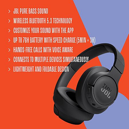 JBL Tune 720BT - Wireless Over-Ear Headphones with JBL Pure Bass Sound, Bluetooth 5.3, Up to 76H Battery Life and Speed Charge, Lightweight, Comfortable $44.95