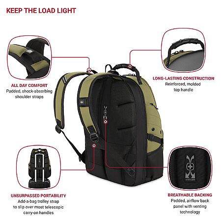 31L/19" Swissgear 1900 Scansmart TSA-Friendly Backpack (Fits 17" Laptop + 10" Tablet, Olive Branch) for