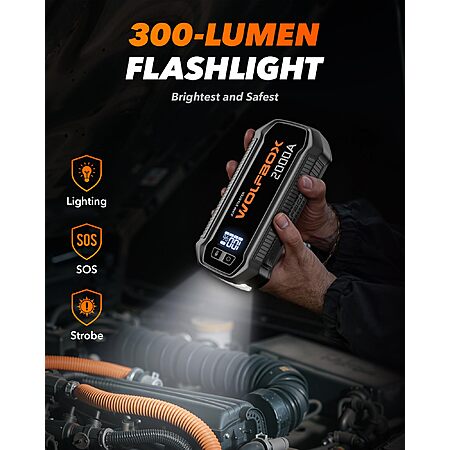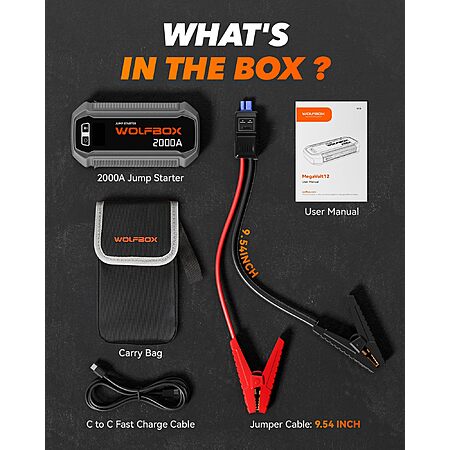 Amazon.com: WOLFBOX 2000A Jump Starter, 12000mAh Battery Jumper Starter Portable with LED Display, 12V Car Battery Jump Starter Pack (7L Gas 6L Diesel Engine) with Booster, LED Light, Jumper Cables (NO Adapter) : Automotive