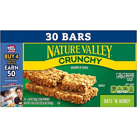 Nature Valley Crunchy Granola Bars, Oats 'n Honey, 30 Ct, 22.35 oz (15 Pouches)~$3.44 After Coupon & S&S @ Amazon