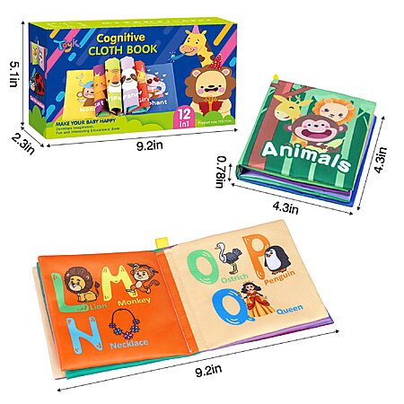 - Baby's First Soft Cloth Book: Baby books toys are made from non-toxic fabric, and absolutely safe for your baby, you don't need to worry baby put it into their mouth. Soft baby books is in a suitable size for 12-18 months infants. Have crinkle papers and with rustle on the cover, which could effectively attract babies' attention and having endless hours of fun!
