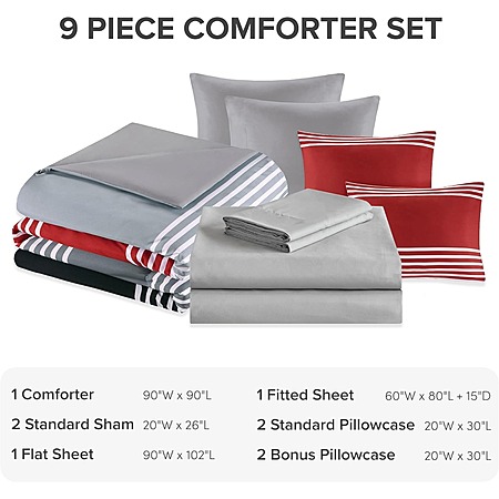 Amazon[amazon.com] has the 9-Piece Comfort Spaces Queen Bed-in-a-Bag Set (Red/Grey) for $23.99. Free Shipping w/ Prime or ordered $35+