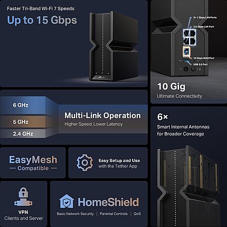 Amazon[amazon.com]has TP-Link Tri-Band BE15000 WiFi 7 Router Archer BE700 for $249.99 - $30 with promo code 30BE700 = $219.99. Shipping is free.