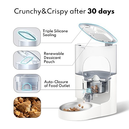 - Triple Freshness Lock: Keeps food crunchy for 30 days with moisture-proof, pest-resistant seals; auto-closes after dispensing.
