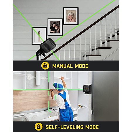 - Self-Leveling & Manual Mode: The laser self-levels within ±4°, and will flash every 0.5 seconds if out of level. Once unlocked, you can manually adjust the pendulum for precise alignment at various angles.
