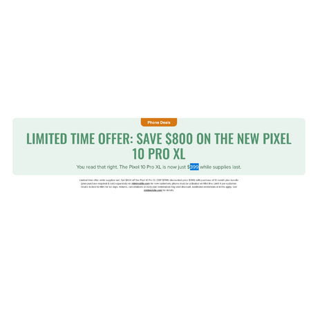 Mint Mobile offers for New Customers: Select Google Pixel 10 XL series + 1-Year Mint Mobile Unlimited Prepaid Plan on sale from $579. Shipping is free.