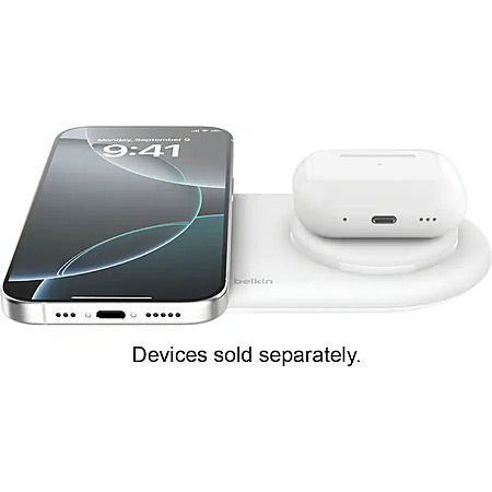 Belkin - 15W Dual Qi2 Wireless Magnetic Charging Pad, MagSafe Compatible for iPhone & AirPods - White for $39.99