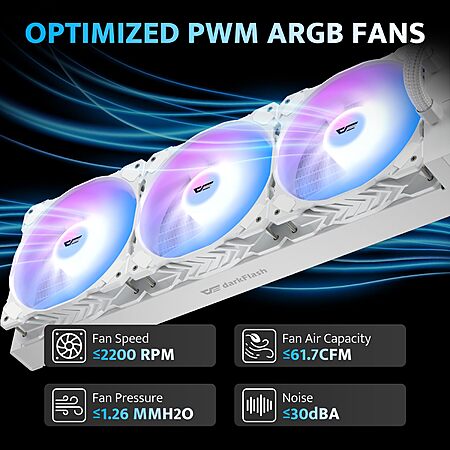 Model: darkFlash DNA360A AIO CPU Liquid Cooler, High-Performance Pump, ARGB Sync, PWM Fans, with Customizable darkFlash Logo Display, Compatible with Intel 1851/1700, AMD AM4/AM5 (White, 360mm AIO)