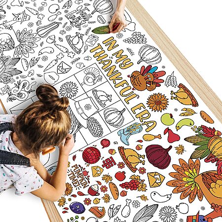 - [Gigantic Coloring Poster]: Thanksgiving banner. The dimensions of this substantial coloring poster not only offer a spacious area for arts and crafts but can also double as a tablecloth, protecting your table from the chaos created by kids.