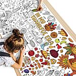 • Thanksgiving banner. The dimensions of this substantial coloring poster not only offer a spacious area for arts and crafts but can also double as a tablecloth, protecting your table from the chaos created by kids.