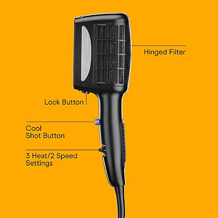 - EASY CARE: A lock button keeps attachments in place while styling and a hinged filter prevents damaging lint buildup and extends the motor life of this blow dryer.