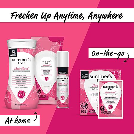 - Summer's Eve Sheer Floral Refreshing Daily Feminine Wash removes odor-causing bacteria