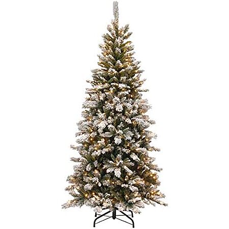 $214.99: National Tree 7.5 Foot Slim Snowy Mountain Pine Tree with 500 Clear Lights, Hinged (SMT-304-75) at Amazon