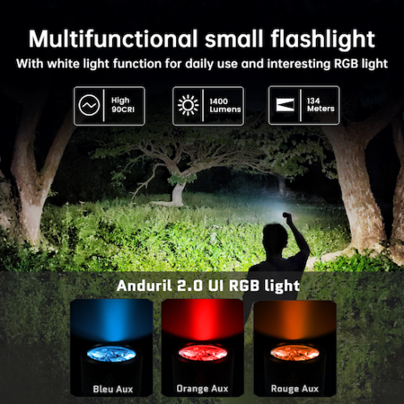 The TS10-V2 is a powerful Mini EDC flashlight. It uses 3 pieces main LEDs and 3 peices single color Aux LEDs to provide ,with Anduril 2.0 and powered by one 14500 battery.