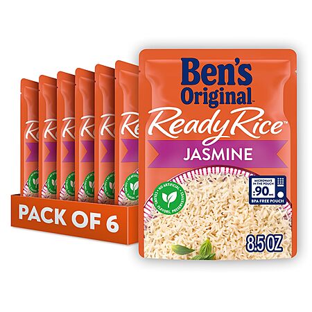 BEN'S ORIGINAL Ready Rice Jasmine Rice, Easy Dinner Side, 8.5 OZ Pouch (Pack of 6)~$5.53 With S&S @ Amazon