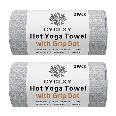 2-Pack 72" x 26.5" CYCLXY Hot Yoga Towel with Grip Dot (Gray) on sale for $27.97 - 50% off when you enter the coupon code