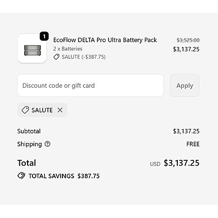 EcoFlow DELTA Pro Ultra Battery 2 Pack $3137.25