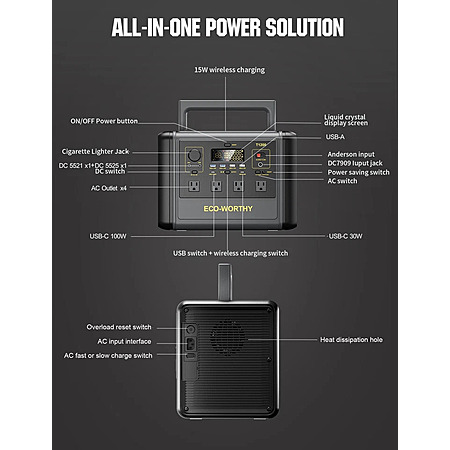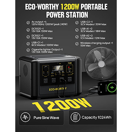 ECO-WORTHY 1200W 1024Wh Portable Power Station Solar Generator $256 + Free Shipping
