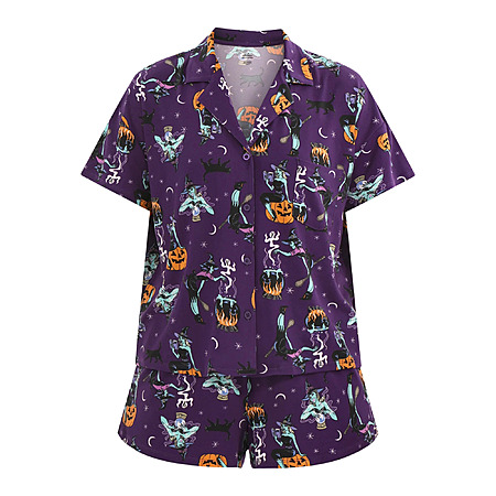 2-Piece Halloween Women's Printed Notched Top and Shorts Pajama Set from Way to Celebrate