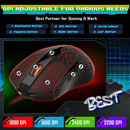 - S107-BA Gaming Keyboard and Mouse Combo, RGB Backlit Gaming Keyboard & 3200 DPI Mouse, Plug & Play to PC/Laptop/Windows