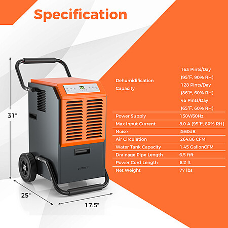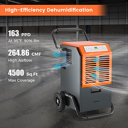 Costway 163 Pints Commercial Dehumidifier w/ Drain Hose and 24H Timer $339 + Free Shipping