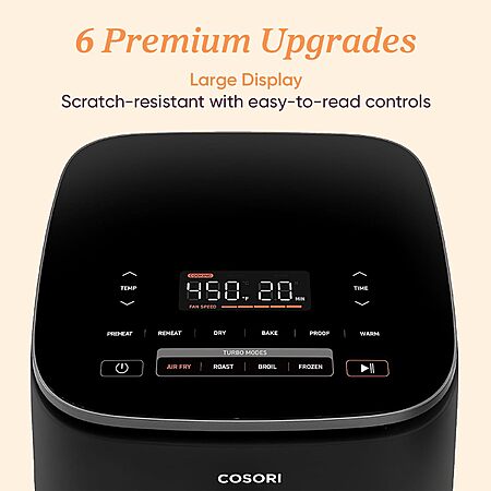 Model: COSORI Air Fryer 6 Qt, 9-in-1 Functions, 5 Fan Speeds, Nutrition Facts for 100+ In-App Recipes, Faster Roast, Bake, Dehydrate, Reheat, Broil, Proof, 95% Less Oil, Dishwasher Safe, TurboBlaze, Gray