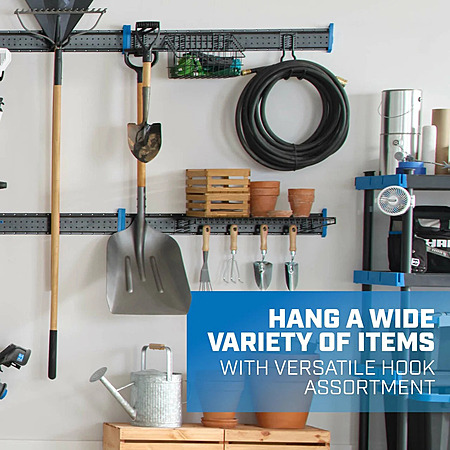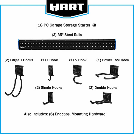 18-Piece HART Garage Storage Rail Starter Kit, Compatible with HART Storage and Standard Peg Hooks, New Condition
