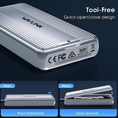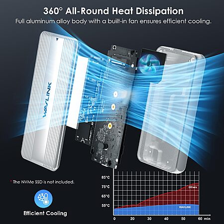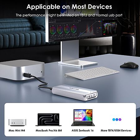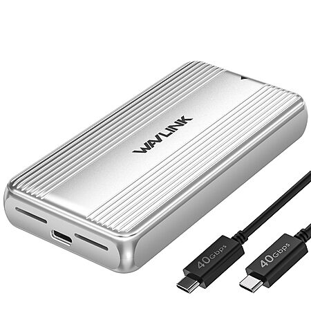 WAVLINK via Amazon has WAVLINK 40Gbps M.2 NVMe Enclosure Compatible with MacBook/Mac mini M4/M3/M2/M1, SSD Enclosure for TBT4/TBT3/USB4/USB3.2 and More, Supports 2230/2242/2260/2280 B+M/M-Key PCIe SSD, Built-in Fan Cooling