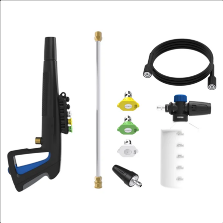 Included Accessories: Comes with an M22 trigger gun, 18 inch metal lance, 25 foot super soft hose, 25 ounce quick-connect foam cannon, and four nozzles (15 degree, 25 degree, 40 degree, and turbo).