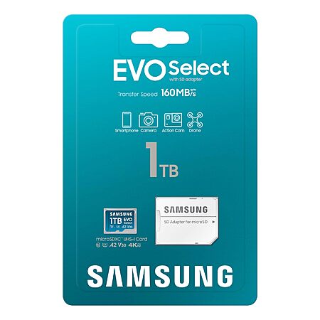 Model: SAMSUNG EVO Select microSD Memory Card + Adapter, 1TB microSDXC, Up to 160 MB/s, UHS I, C10, U3, V30, A2, for Mobile Phone, Smartphones, Nintendo-Switch, and Tablets (MB-ME1T0SA/AM)