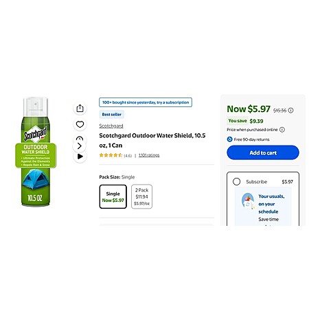 Product details:- WATER REPELLENT SPRAY: One Scotchgard Outdoor Water Shield Sprays, 10.5 oz cans, that protects fabrics against the elements