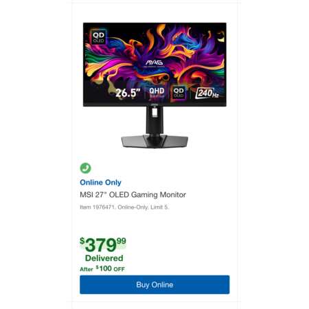 [Starts Nov 17th] Costco Members: MSI MAG 271QPX QD-OLED E2 27" 1440p 240Hz QD-OLED $379.99