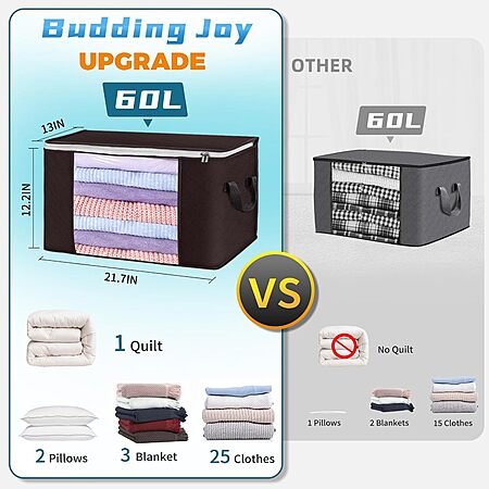 6-Pack Budding Joy 60L Foldable Closet Organizers Storage Bags (8"L x 6"W x 8"H) $11.89 + Free Shipping w/ Prime or on $35+