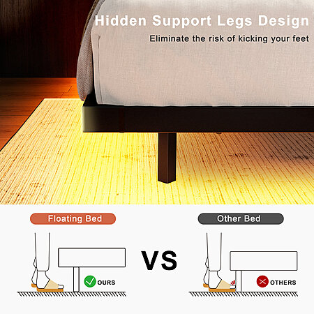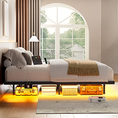 Zoller Floating Bed Frame w/ LED & Charging Station, Modern Platform Bed (Queen) $111.99 + Free Shipping
