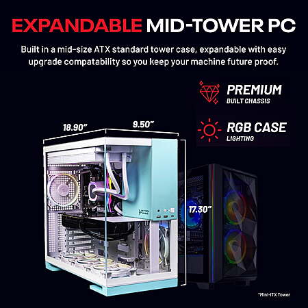 • Powerful Processing: Features an AMD Ryzen 7 9800X3D CPU with a 5.2GHz Turbo Boost and 32GB DDR5 5200 RGB gaming memory for high-performance computing.Advanced Graphics: