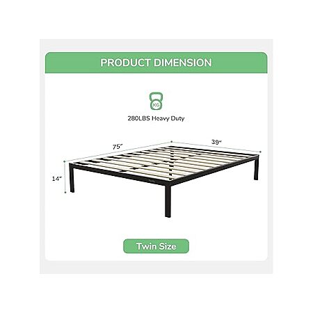 14" Novilla Metal Platform Bed Frame w/ Storage (Black, Twin or Twin XL) $39.99 + Free Shipping w/ Prime