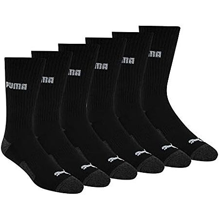 $8.37: 6-Pack PUMA Crew Socks (10-13, Black/Grey Logo) at Amazon