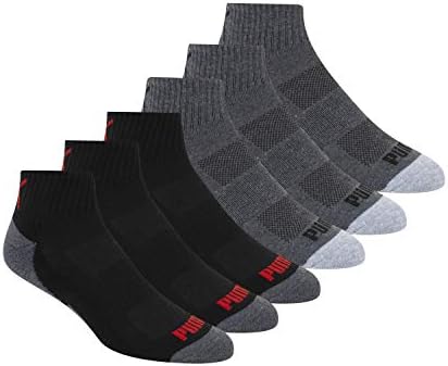 Model: PUMA mens 6 Pack Quarter Crew fashion liner socks, Dark Grey/Black Red Combo, 10 13 US