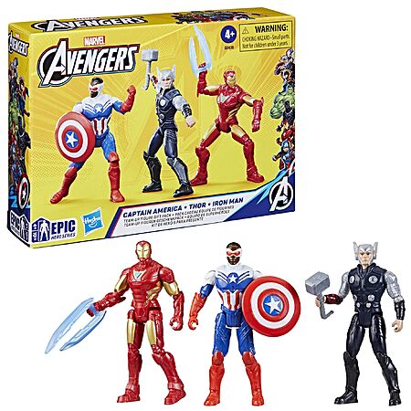 Marvel Avengers Epic Hero Series Team-Up Gift Pack, 4-Inch-Scale (10cm) Captain America, Thor, Iron Man Action $13.99