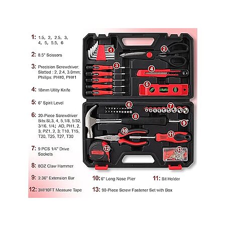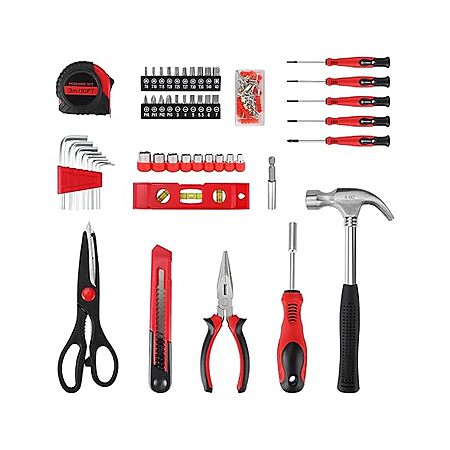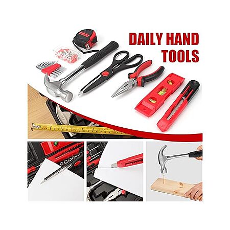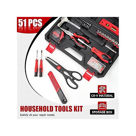 $19.99*:51-Piece Red Tool Set, Home Tool Kit with Toolbox Storage Case Home Repair Tool Kit