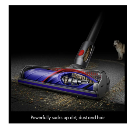 Some cordless vacuums sacrifice suction for lightness. The Dyson V9 Motorbar cordless vacuum delivers the powerful performance you'd expect from a Dyson, yet it's 33% lighter than the Dyson V15 vacuum. With up to 40 minutes of fade-free suction, it is pioneering Dyson technology concentrated for deep cleaning.¹ It has advanced, whole-machine filtration that captures pet allergens and fine dust and expels cleaner air.² The Motorbar cleaner head de-tangles wrapped hair as you vacuum. The innovative Hair Screw Tool with a conical brush bar is perfect for cleaning upholstery and pet beds. Thanks to the cordless format, it also transforms into a handheld vacuum with one click so you can clean up high, down low, and everywhere in between. Comes with a 2-year warranty and lifetime Dyson support. Powerfully picks up dust and hair from all floors. Anti-tangle comb clears hair from the brush bar.