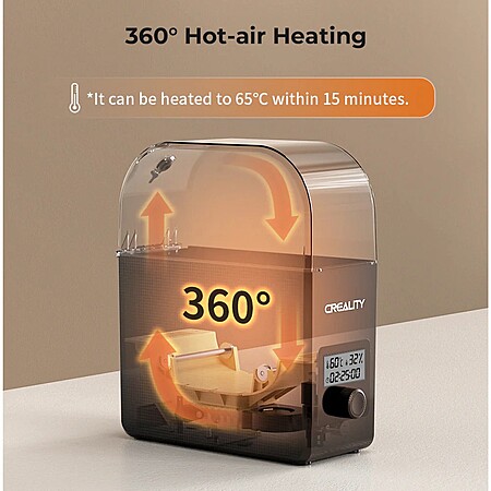 - 【Upgraded Design】Creality Filament Dry Box 2.0 heats up quickly and has a built-in fan that circulates the hot air through 360° inside the chamber, evenly heating the entire chamber. It can be heated to 65°C within 15 minutes.We have added thermal insulation cotton on the dryer box inner wall to keep warm and anti-scald when printing.Dryer box input voltage: 110V 50/60Hz.