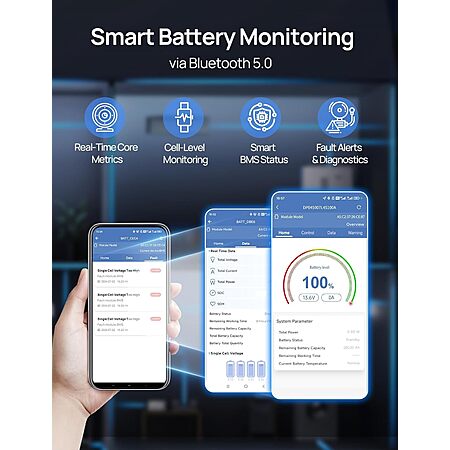 Bluetooth and remote app monitoring to read the battery voltage, current, battery capacity and other important information